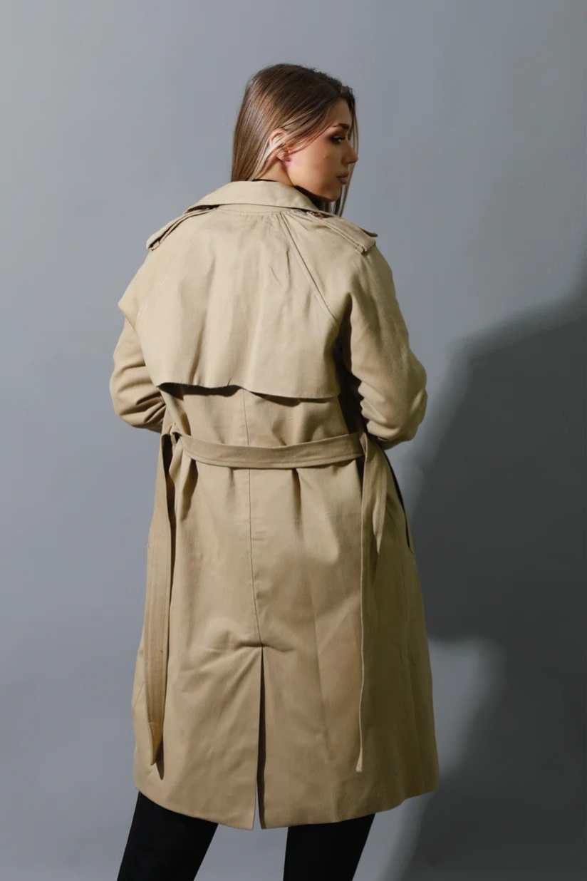 This women's trench coat is made of durable gabardine material and features a classic black color. The belt adds a stylish touch while providing a flattering fit. With a length of 101 CM, this coat provides coverage and protection from the elements. Stay stylish and comfortable with this timeless piece.