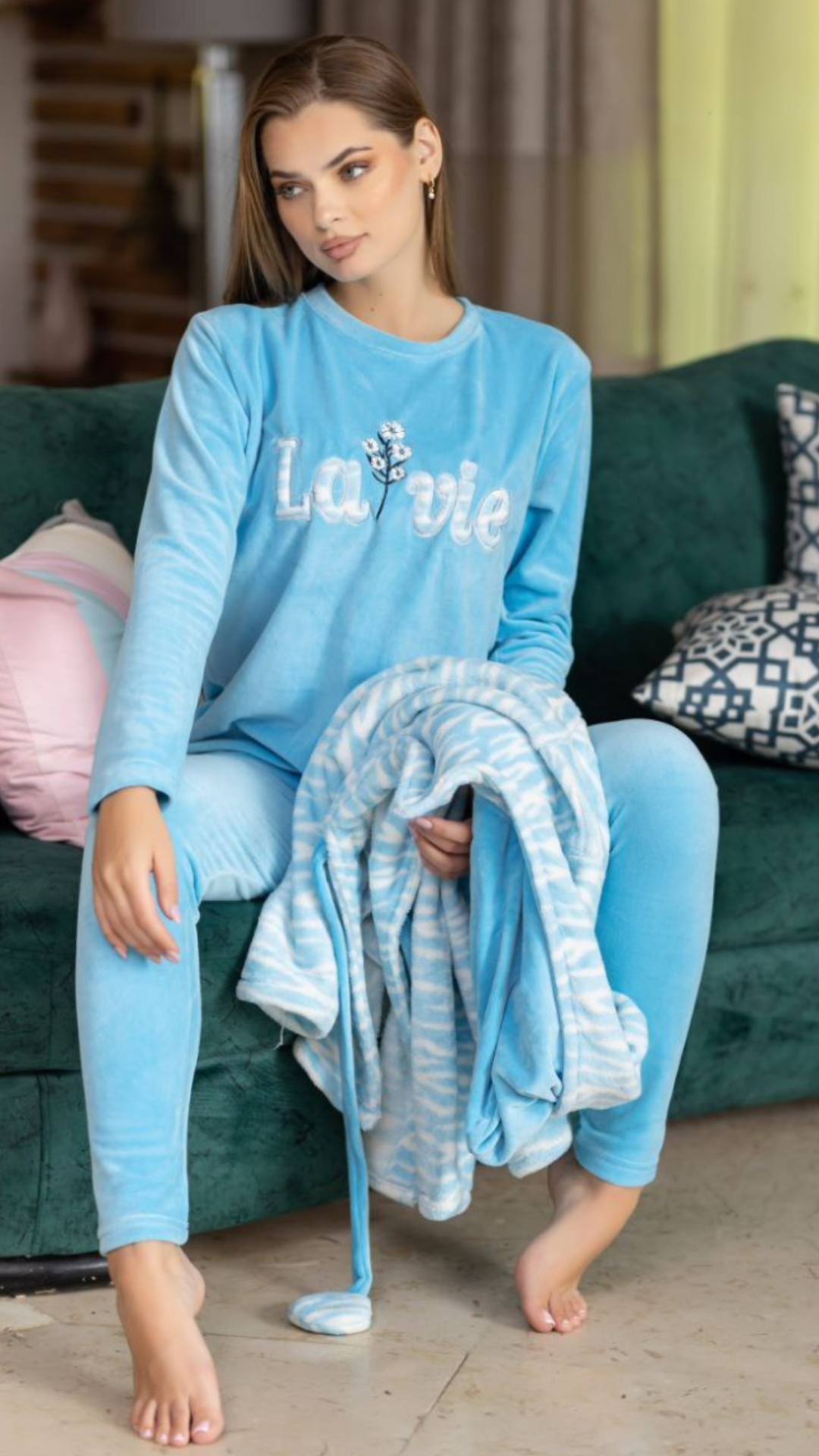 Lounge in luxurious comfort with this 3 piece velvet set! Soft and stylish, each piece comes in a sumptuous corn flower blue and light salamon, sure to make your home feel like a cozy getaway. So go ahead, treat yourself and relax in style.